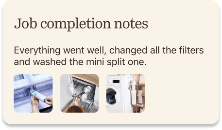 Track progress from scheduling to completion. See photos, notes, and documentation as work happens.